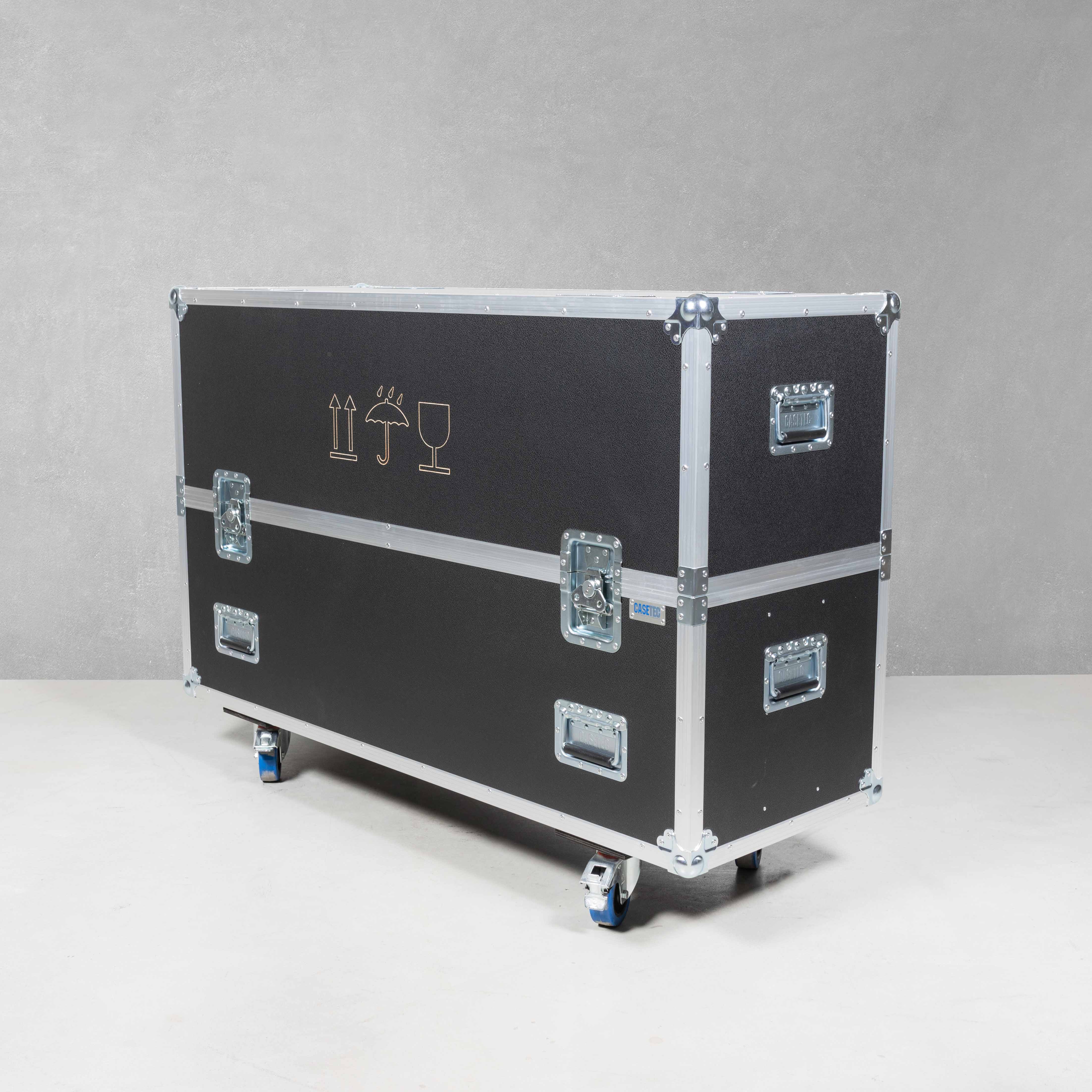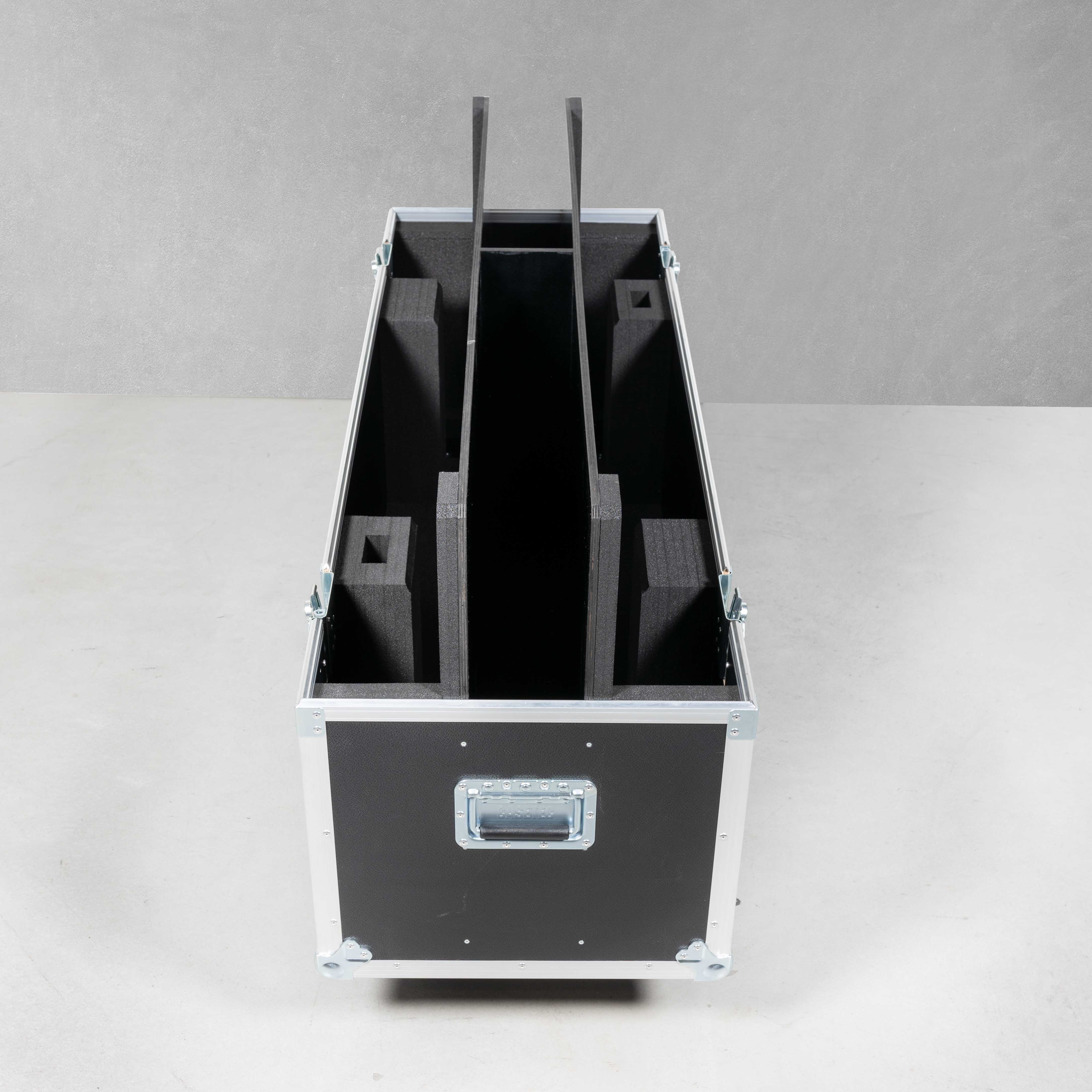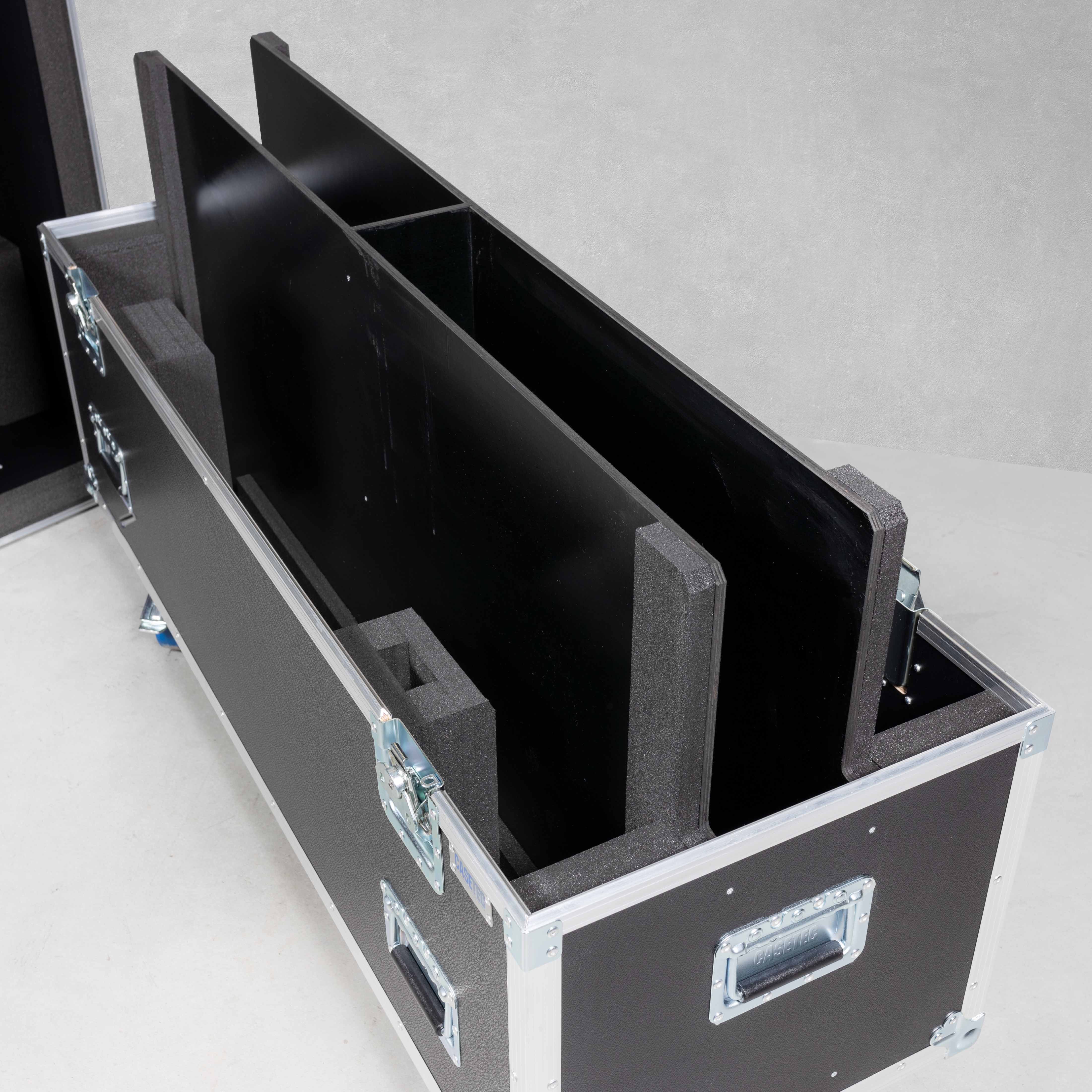 Flightcase für zwei Flachbildschirme 55" mit Zubehörfach mittig
