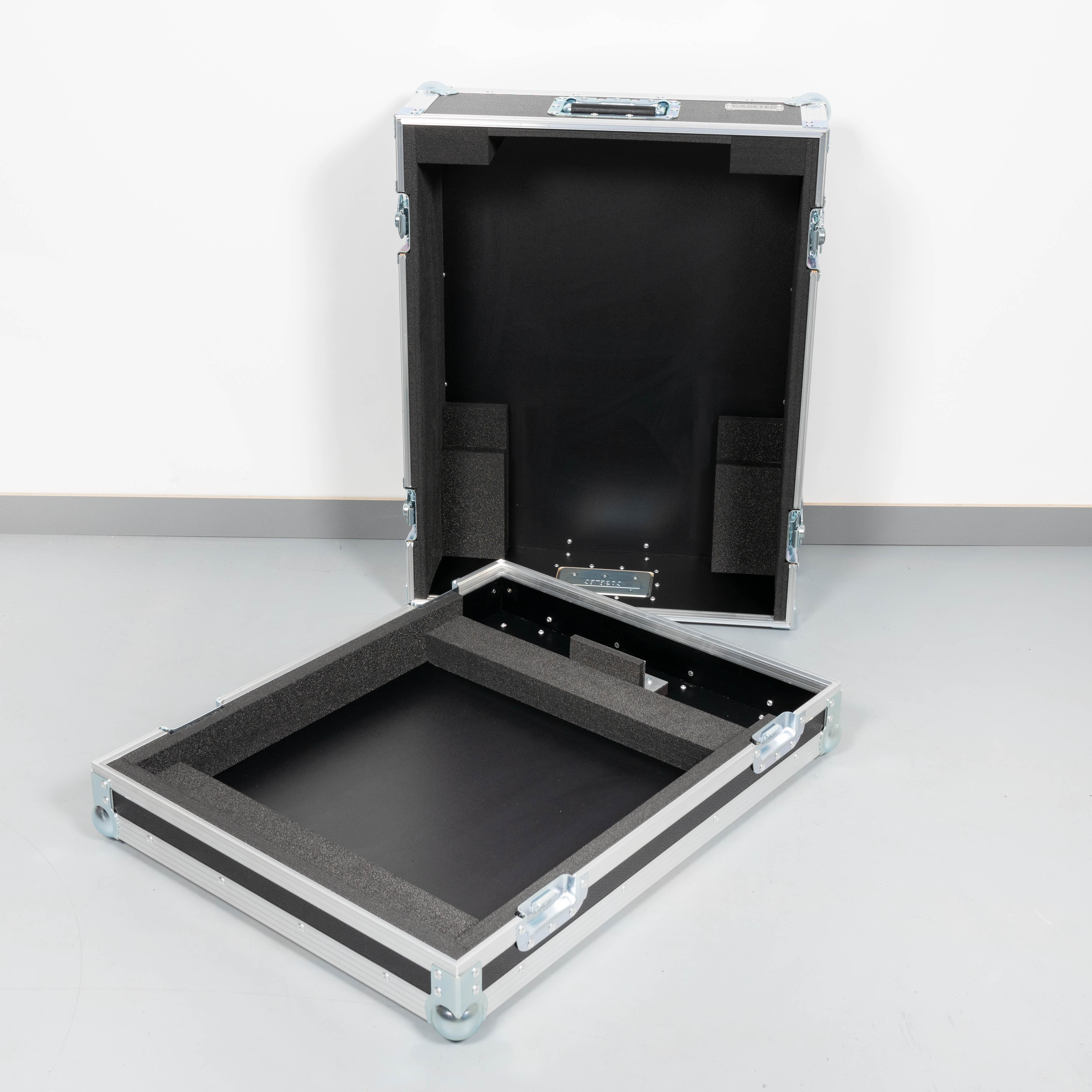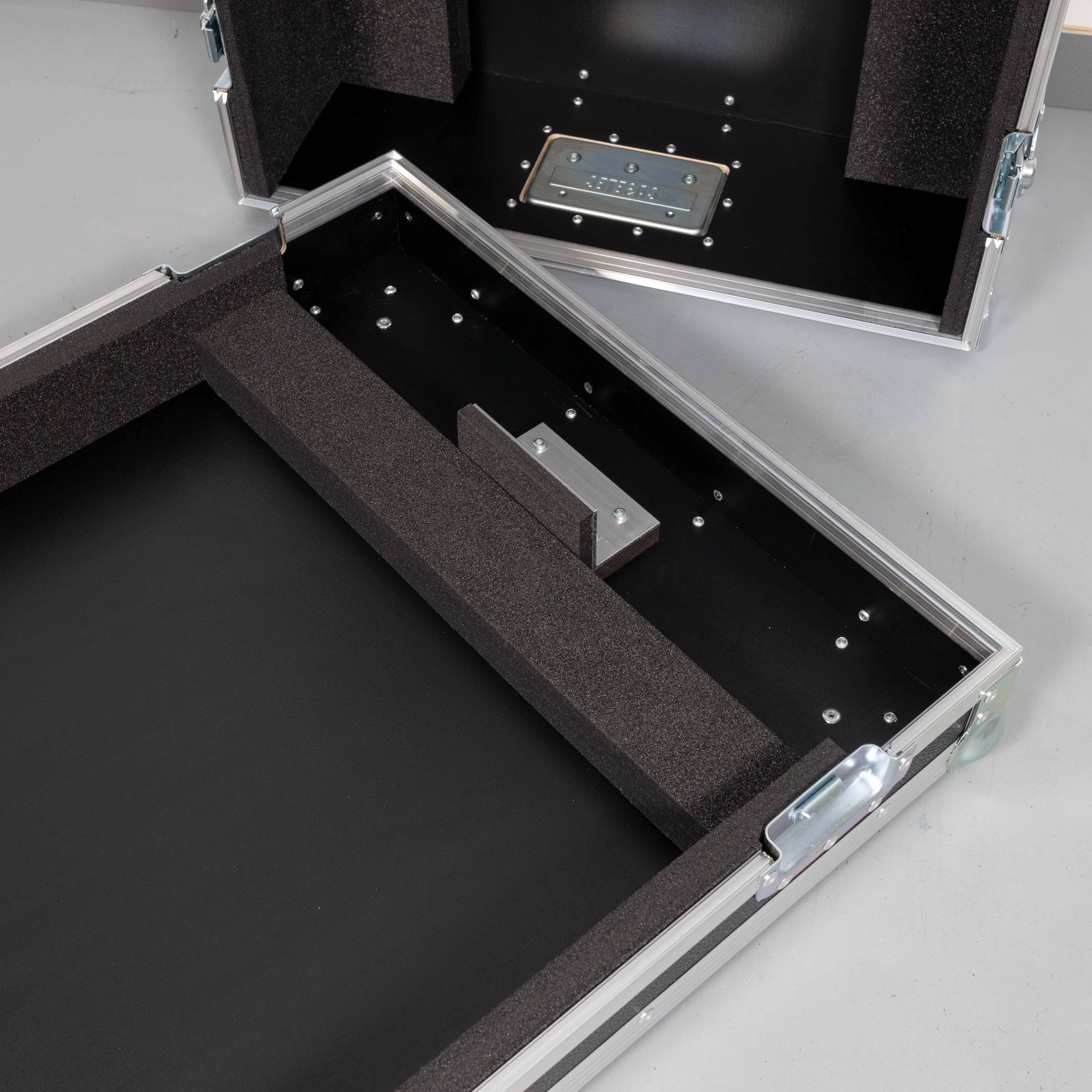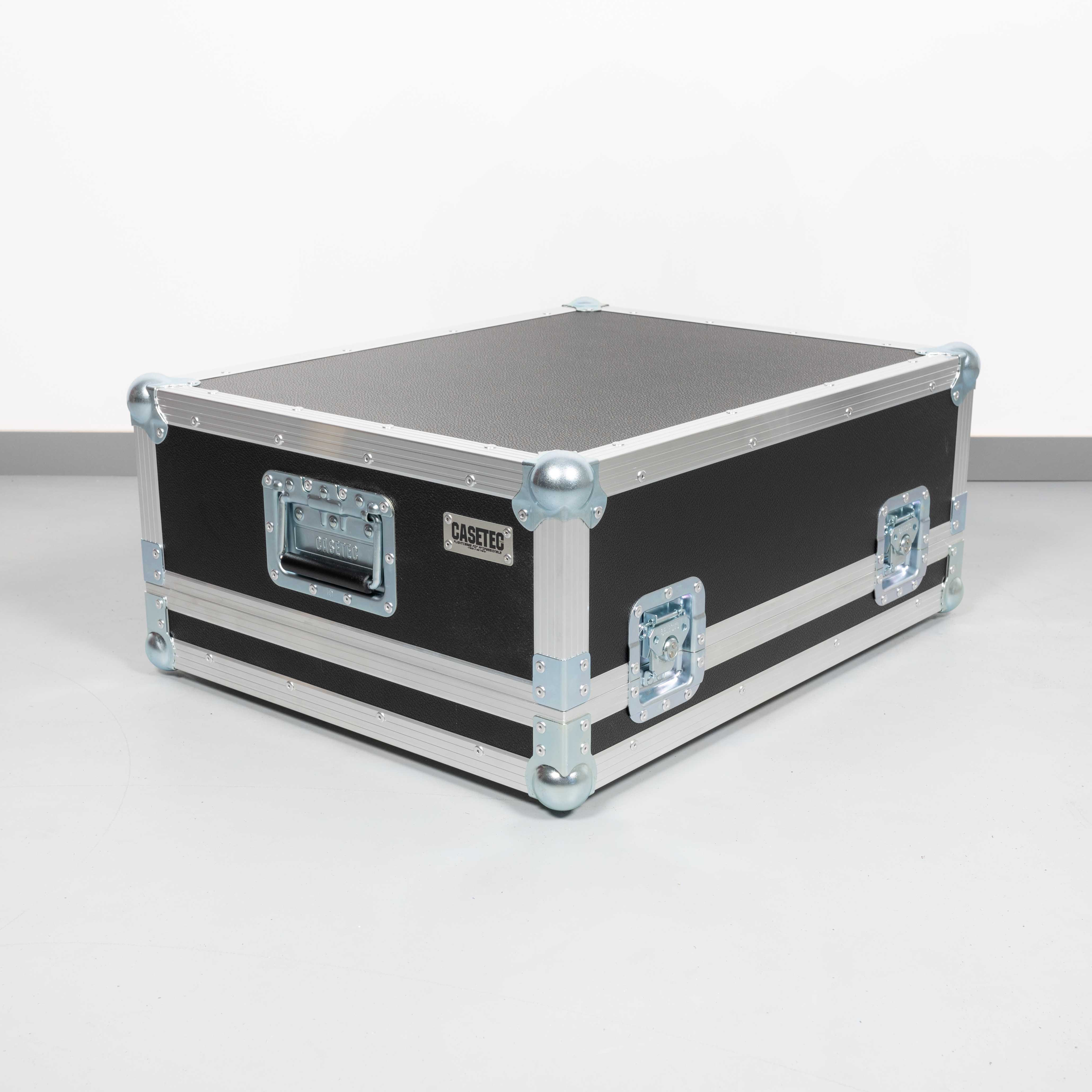 Das Case ist speziell als abnehmbare Haube mit festem Unterteil konstruiert. Dies ermöglicht es, das Mischpult direkt im Case-Boden zu betreiben, was den Auf- und Abbau erheblich beschleunigt.