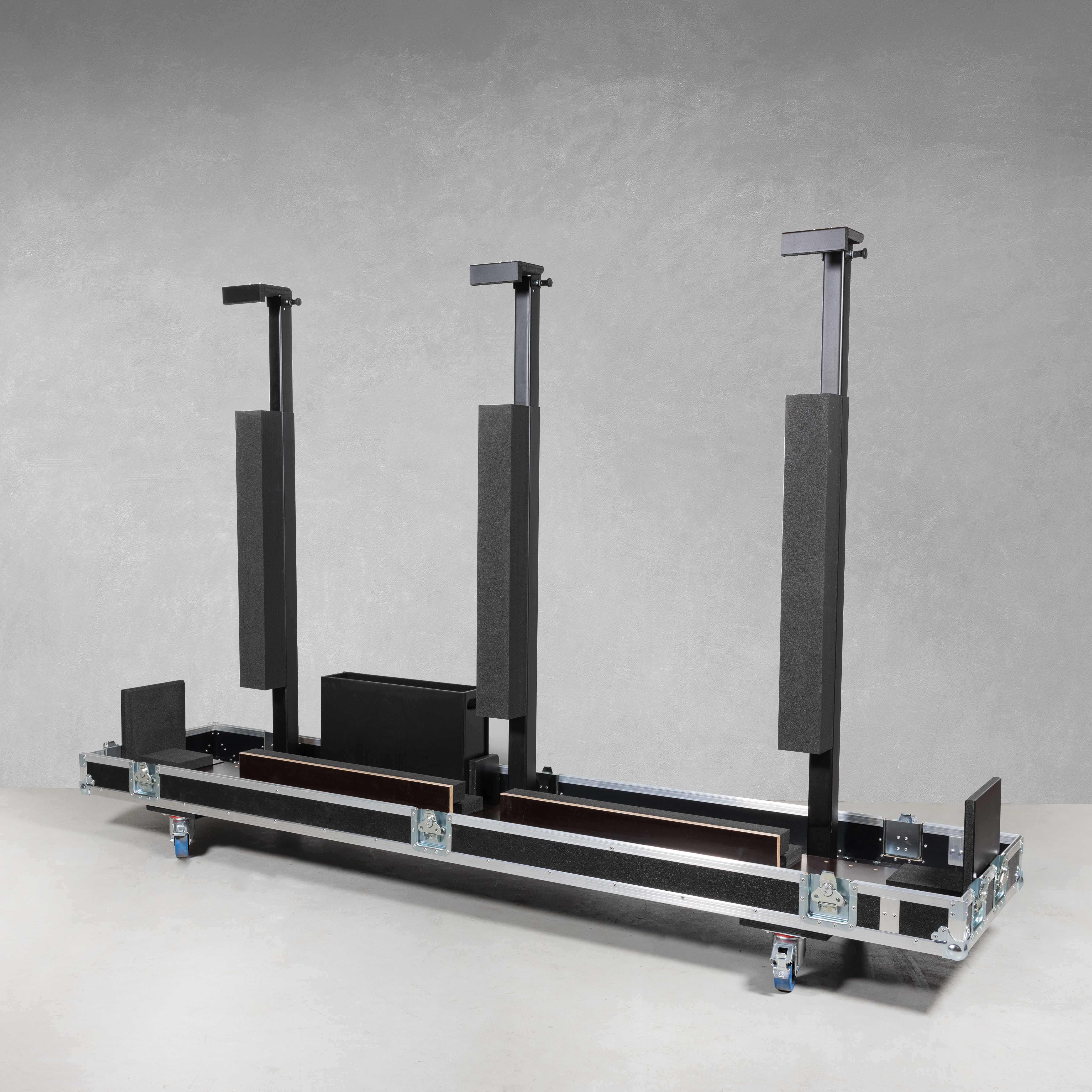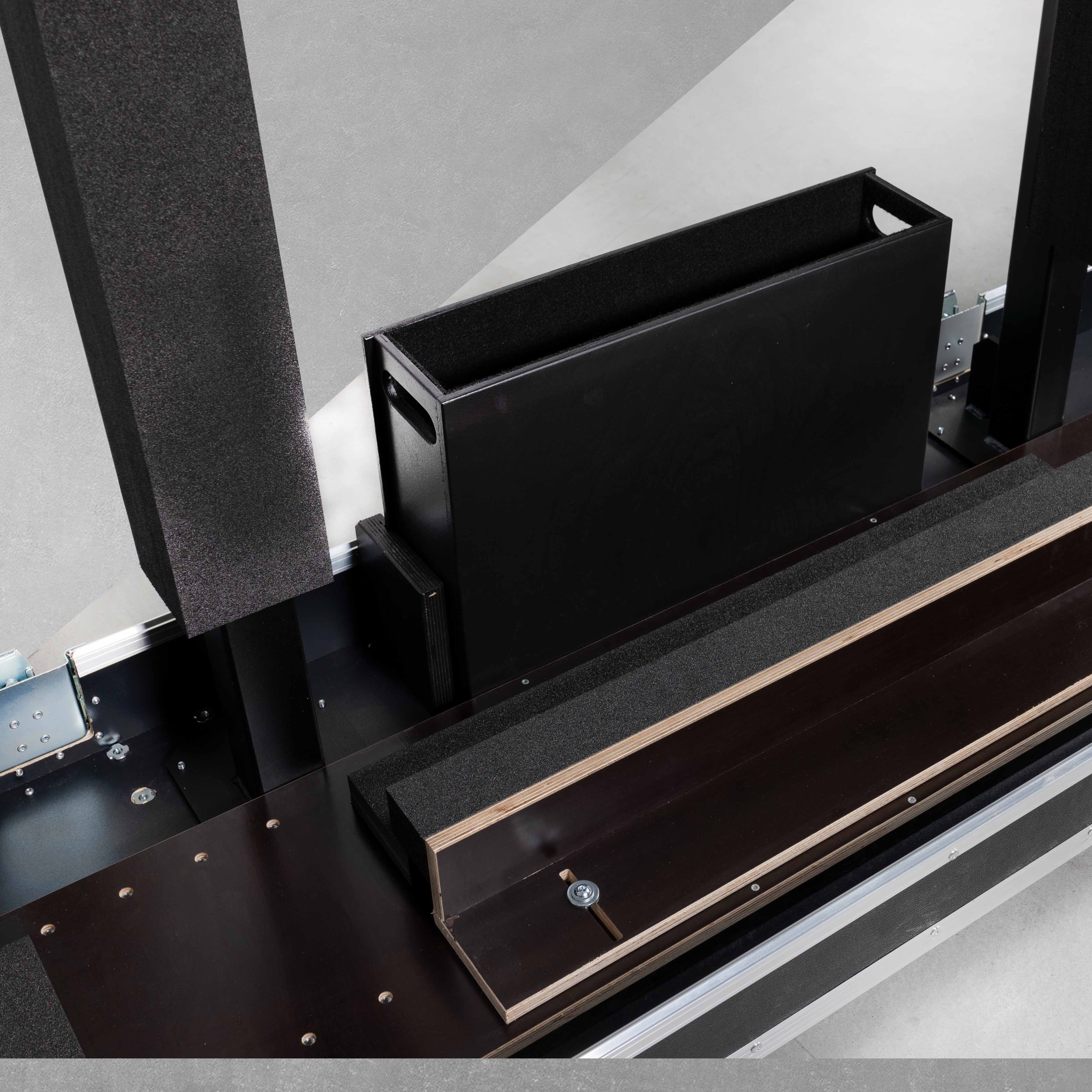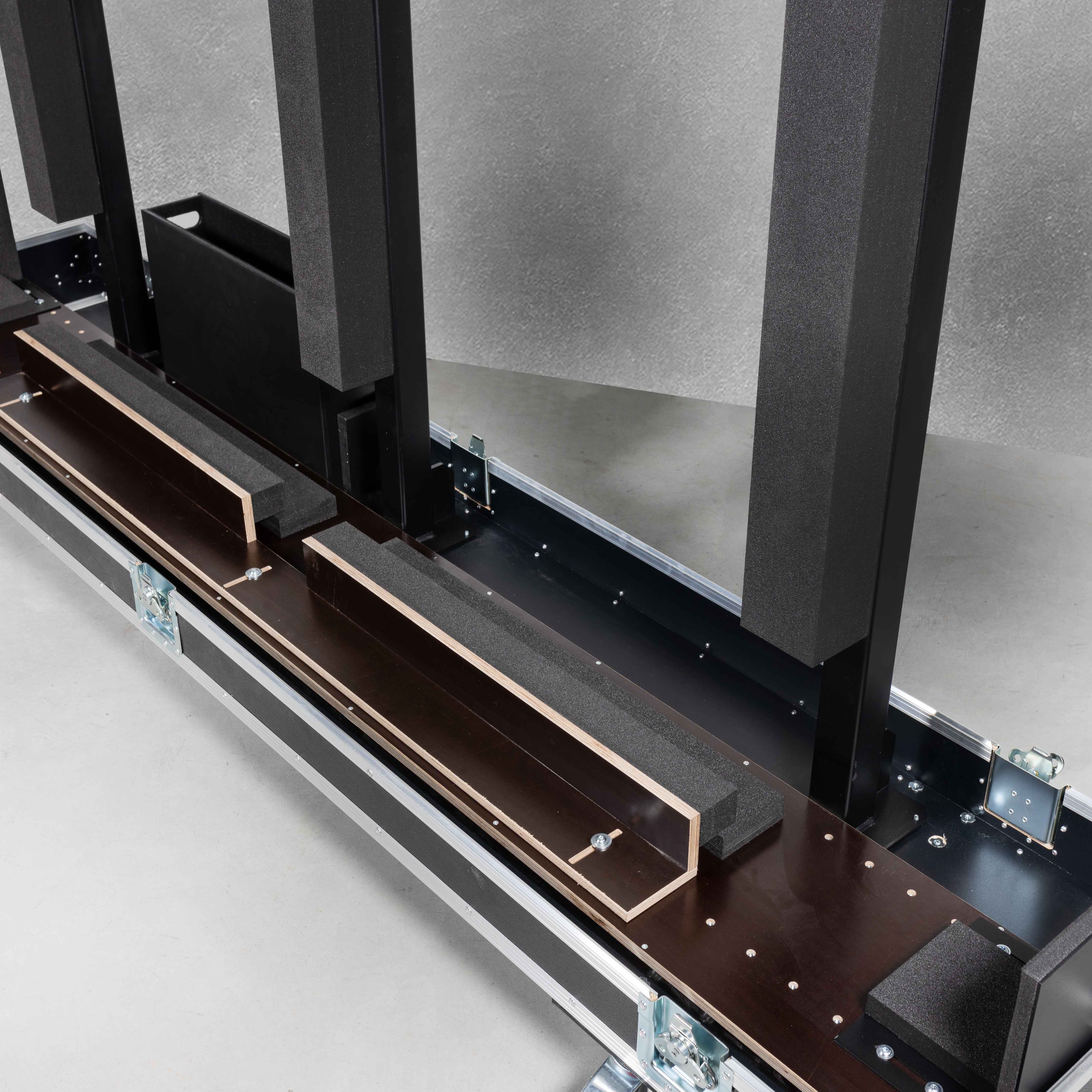 Innen mit verstellbaren Stahlgestell zur Aufnahme eines Gerätes ( Gerät kann im Case betrieben werden )